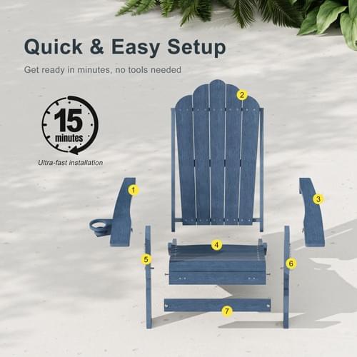 【Weather Resistant HDPE Material】 Constructed from premium HDPE material, this chair withstands intense sun, rain, and snow without cracking or peeling. Unlike traditional wood, it requires no painting, staining, or waterproofing.