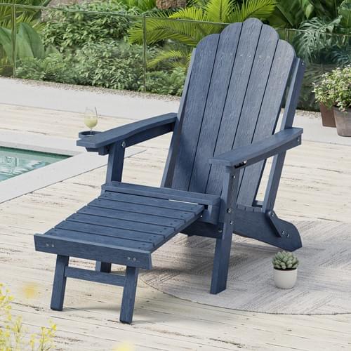 【Retractable Ottoman & Adjustable Back】 This Adirondack chair features a built-in retractable ottoman that slides out for full-body relaxation and tucks away to save space. The backrest offers 3 adjustable positions, allowing you to easily switch from an upright reading mode to a reclined napping angle.
