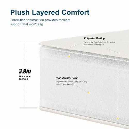 | 【Washable Thick Sandwich Cushions】 Each patio couch features 3.9 Inch thick cushions with a pearl cotton and high-density sponge sandwich structure for lasting support. The U-shaped zippers allow for easy removal of the outdoor sofa covers, making machine washing simple and ensuring your outdoor furniture remains clean and fresh. |