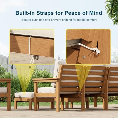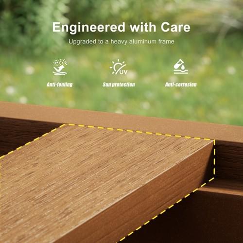 | 【HIPS All-Weather Construction】 This outdoor furniture set is built with High Impact Polystyrene (HIPS), offering superior rigidity and impact strength compared to wood. Engineered to resist cracking in freezing days and softening in high-temperature days, it provides a stable and reliable outdoor sectional for any climate or backyard setting. |