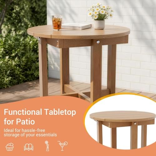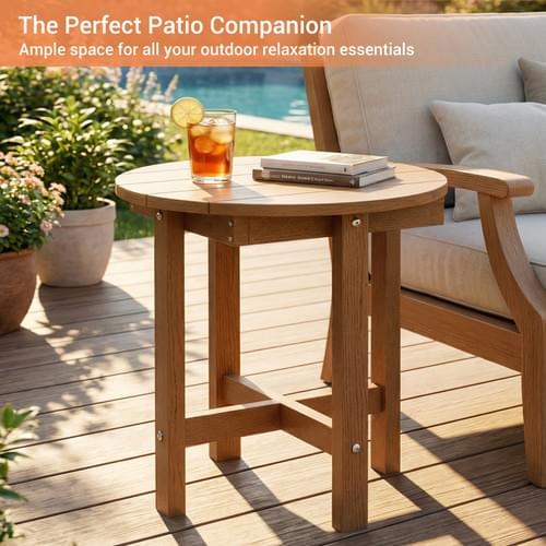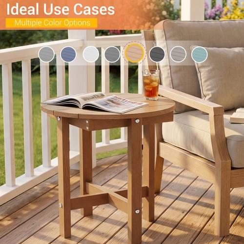| 【Perfect Match for Adirondack Chairs】 Designed with an optimal 16.7-inch height, this side table fits perfectly alongside standard low-profile Adirondack chairs. Unlike smaller tables that feel like toys, this table offers a comfortable reach for your things. The classic wood grain texture coordinates seamlessly with your existing poly lumber furniture. |