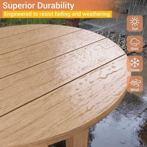 | 【HDPE Material】 Crafted from high-density polyethylene (HDPE), this patio table withstands intense sun, rain, and snow without fading, cracking, or peeling. Unlike traditional wood that rots or requires annual staining, our poly lumber retains its vibrant color for years. The material is heavy enough to stay stable in winds yet easy to move when needed. |